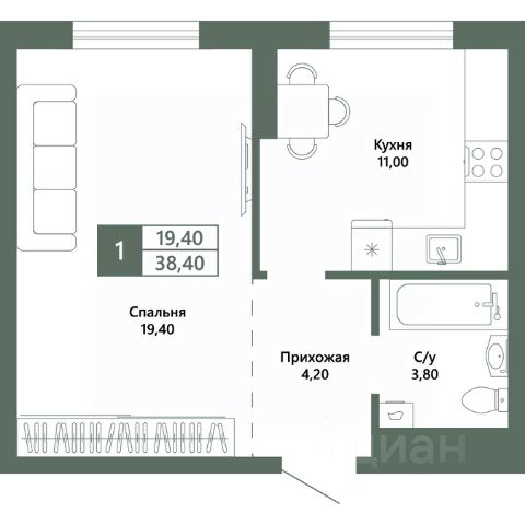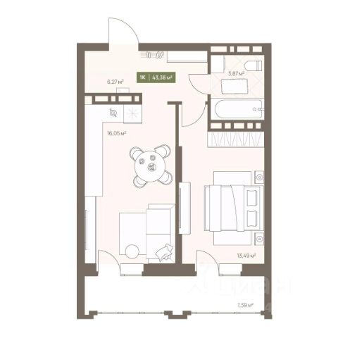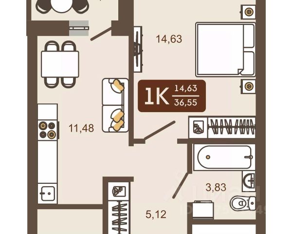 Продаётся 1-комнатная квартира в строящемся доме (Дом 24 (Комсомольский, 48А)), срок сдачи: III-кв. 2027, общей площадью 41.8 кв.м., на 14 этаже. Расположение, транспортная доступность