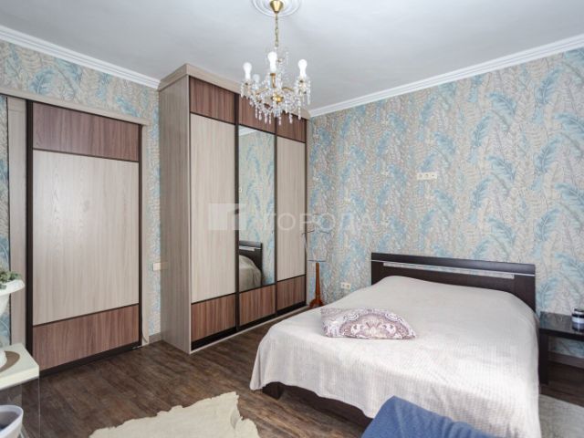 Межкомнатные двери из массива дерева, пол в зале, спальне и коридоре - паркет бук. В спальне установлен кондиционер, выход из спальни на застекленную лоджию 3,2 кв.м. Мебель в спальне производства Италия (спинки кровати, столешницы из натурального дерева)