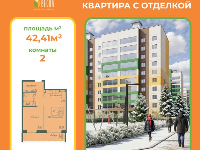 ЖК "Ёлки — город в лесу" ЖК "Ёлки" — это малоэтажный жилой комплекс, расположенный среди елового леса. Здесь всё продумано для спокойной и комфортной жизни без ремонта и лишних забот. Главное преимущество проекта — готовые квартиры для жизни с первого дня: дизайнерский ремонт уже выполнен кухонный гарнитур включён в стоимость полностью оборудованный санузел формат "заезжай и живи" — без шума, пыли и грязных работ Территория и среда Закрытая охраняемая территория Зелёные дворы без машин Малоэтажные дома Парковка рядом с домом Инфраструктура Частная школа нового формата Частный детский сад Торговый центр и кафе Зоны отдыха и прогулочные маршруты Безопасность и качество Видеонаблюдение и контроль доступа Современные инженерные решения Энергоэффективные технологии Экологичные материалы строительства ЖК "Ёлки" выбирают те, кто: хочет переехать без стресса и ремонта ищет готовую квартиру для семьи ценит тишину, порядок и природу рассматривает покупку как инвестицию с быстрым запуском Условия покупки Покупка напрямую от застройщика Ипотека Рассрочка Материнский капитал Помощь в одобрении Купить 2-комнатную квартиру на 1 этаже в Кемеровской области.