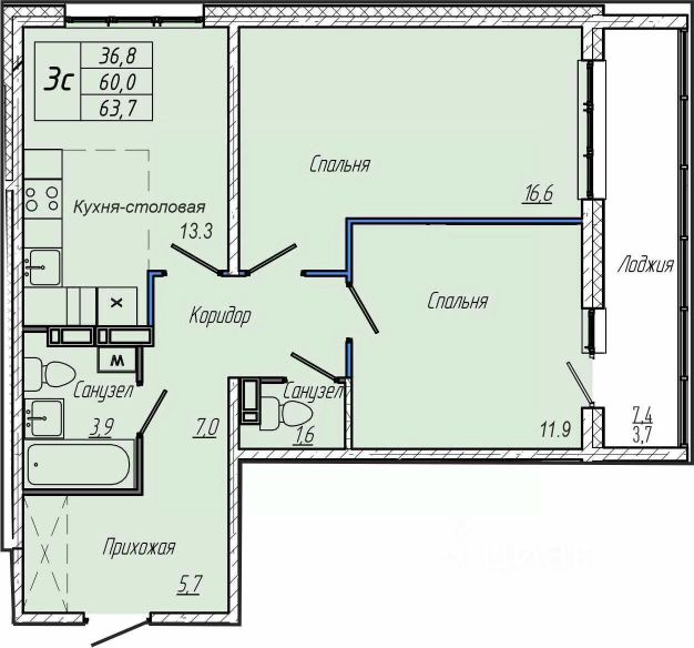 • ✅ Минимальная площадь: 36,4 м²