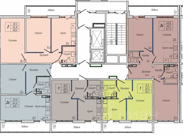 Квартиры от 28 до 113 м2