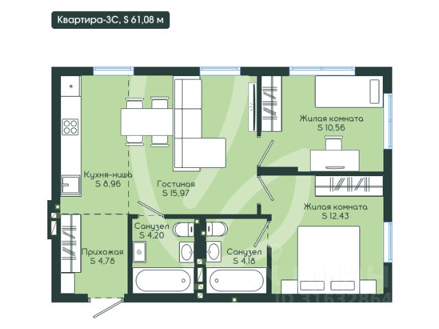 Квартал-сад "Клевер" Ваш новый дом для яркой жизни Откройте для себя возможность жить в самом сердце Новокузнецка, где городской ритм гармонично сочетается с оазисом уюта. "Клевер" — это закрытый жилой комплекс с безмашинным двором и продуманной инфраструктурой, где всё необходимое от магазинов и кафе до образовательных учреждений находится буквально под рукой. Приобретите квартиру и получите свободу воплощать интерьер своей мечты без лишних затрат и временных задержек. Это выгодное вложение в будущее, где каждый метр продуман для вашего комфорта и успеха. Что делает "Клевер" особенным: Идеальное расположение: Всё, что нужно для повседневной жизни от удобных сервисов до детских кружков находится в шаговой доступности. Современный дизайн: Архитектурные решения, где каждая деталь вдохновляет на новые идеи, создают атмосферу, в которой хочется творить и жить. Ремонт: Квартиры с перегородками позволяют быстро заехать и начать жить в пространстве, созданном для максимального комфорта. Приватность и безопасность: Закрытая территория, система контроля доступа и двор без машин гарантируют спокойствие для всей семьи. Экологичное благоустройство: Просторные зелёные зоны, прогулочные аллеи и уютные места для отдыха формируют настоящий городской оазис, где легко перезагрузиться. Сообщество и возможности: Комьюнити-центр и организуемые мероприятия способствуют развитию добрососедских отношений и создают пространство для общения.