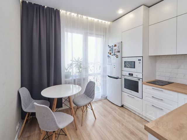 Квартира состоит из просторной кухни, двух спален, и уютного балкона с остеклением и ремонтом. Панорамное окно дает много света и открывает красивый вид во двор.