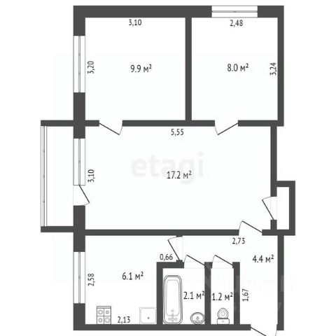 • ✅ Объект наибольшей площади: 63 м²