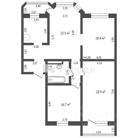 Код объекта: 1370928. ОБЪЕКТ: 4-х комнатная в самом центре города, площадь 119,1 кв.м. Кухня площадь 7,7 кв.м. на 3-м этаже 9-ти этажного элитного кирпичного дома. СОСТОЯНИЕ: Квартира просторная и светлая, планировка бабочкой, окна выходят на Северо-Восток (кухня, обеденная зона, гостиная/зал) и Юго-Запад (спальня, детская). Неоспоримым преимуществом квартиры является то, что дом, в котором она распалагается, - кирпичный, это обеспечивает отличный микроклимат внутри помещения: летом даже в жару довольно прохладно, особенно с восточной стороны, а зимой тепло. В квартире можно ограничиться косметическим ремонтом или сделать перепланировку под себя. Есть гардеробная, встроенная кухня. В обеденной зоне - огромное эркерное окно и выход на неостекленную лоджию. Все створки окон - распашные (глухих створок нет). Обеденная зона по полу-открытому принципу переходит в гостиную/зал. Из небольшого коридора можно попасть в хозяйскую спальню - самую большую комнату. Здесь расположен выход на остекленный балкон. Также коридор ведет в детскую/вторую спальню/кабинет. Окна этих комнат выход во двор, где растет много зелени. Меблировка обсуждается индивидуально с покупателем. С/у совмещенный, есть ванная, есть возможность оставить новую стиральную машину. ЛОКАЦИЯ: Рядом - торговые центры (Ника, Комета, Ситимолл), бизнес-центры (БЦ Сити), множество ресторанов и кафе, продуктовые магазины (Мария Ра, Магнит, Пятерочка), фитнесс-центры и другое. Инфраструктура развита отлично. Есть школы (Гимназия 62, СОШ 72 с английским уклоном) и детские сады. Отличная транспортная доступность