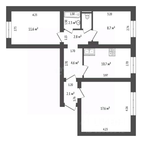 - Светлая, тёплая квартира, арка, полезной площади 33 кв. м., кухня 5,7 кв. м., зал, детская.