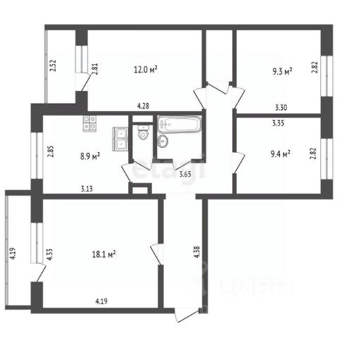 - четыре просторные комнаты, идеально разделённые для комфортного проживания и личного пространства;