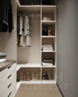 - в одной из комнат расположена оборудованная гардеробная с полками, где можно удобно разместить множество личных вещей;