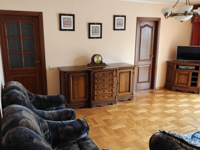Гостиная с французским окном (20,1 кв.м), которое визуально расширяет пространство и обеспечивает выход на застекленный балкон. Кабинет (3,7 кв.м), три изолированные спальни (16,5; 10,2; 9,8 кв.м), бльшая из которых со вторым застекленным балконом и встроенным шкаф-купе. Из окон приятный вид в сторону центра города и парка.