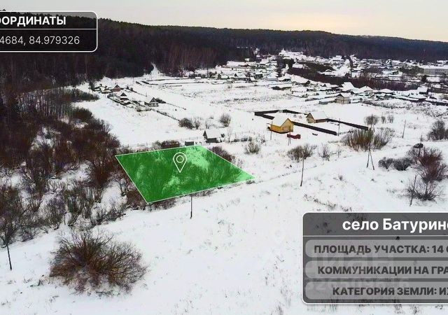 Продается участок 14 соток в поселке Батурино (ИЖС)! Адрес: Томская область, пос. Батурино, переулок Таежный. Цена: 145 000 рублей. Возможен торг! Ключевые преимущества: * Отличная цена: Одна из лучших цен на рынке в этой локации. * Полное назначение: Участок под строительство можно сразу начинать строить дом для постоянного проживания. * Коммуникации (электричество, дорога) подведены к границе участка. Это значительная экономия времени и денег. * Большая площадь: 14 соток достаточно места для дома, сада, огорода и зоны отдыха. * Тихий и зеленый район: Поселок Батурино славится спокойной экологичной атмосферой. Дополнительно: * Удобный подъезд. * Быстрая транспортная доступность до Томска. Идеально для: * Строительства собственного дома мечты. * Дачи для круглогодичного отдыха. Звоните или пишите прямо сейчас! Задавайте вопросы, договоримся о просмотре в удобное для вас время