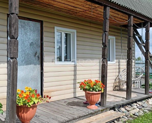 На первом этаже расположены просторный зал и кухня, на втором спальня и дополнительное пространство, которое вы можете обустроить по своему усмотрению. По всему дому и на веранде установлены окна ПВХ. Под домом находится вместительный подпол, который всегда остается сухим. На участке также имеются баня, летняя кухня, хозяйственная постройка (дровник и угольный сарай). Земля площадью 9 соток в собственности и прошла межевание, а к дому ведет асфальтированная дорога. В наличии две теплицы, разнообразные многолетние цветы, плодовые деревья (сливы, груши), кустарники (малина, черноплодная рябина, смородина, жимолость, вишня) и клубника. Проведены интернет и телевидение (спутниковая тарелка), установлена система видеонаблюдения.