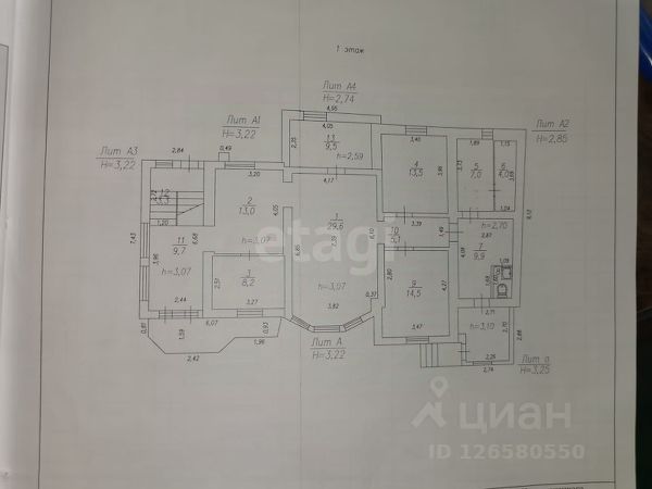 1 этаж- кухня, санузел, кладовка, дровяник, сенки