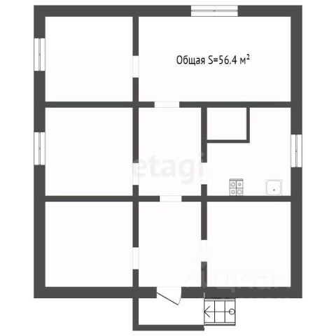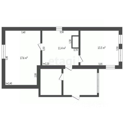 В доме небольшие, но уютные три комнаты (22,8 кв.м.; 8,4 кв.м. и 5,3 кв.м.; совмещенный санузел 6,8 кв.м.