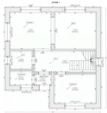 1-ый этаж дома: две комнаты по 13,4 и 11,2 кв.м., холл -22,6 кв.м, кухня 23,4 кв.м., санузел с ванной.