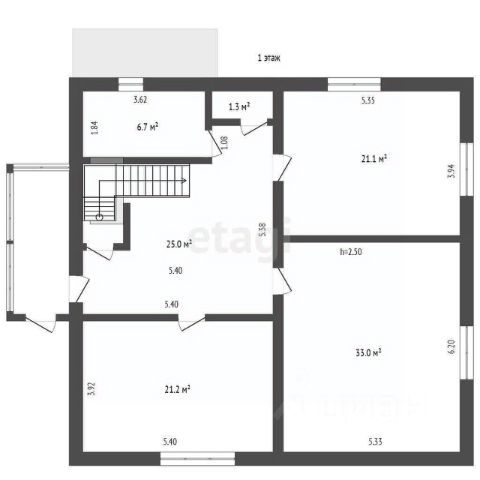 На первом этаже расположены:небольшая прихожая со встроенным шкафом(он разделяет пространство на небольшую комнату (кабинет); просторная кухня-студия 35 м²; ванная комната; туалет. Санузел раздельный, что очень удобно.