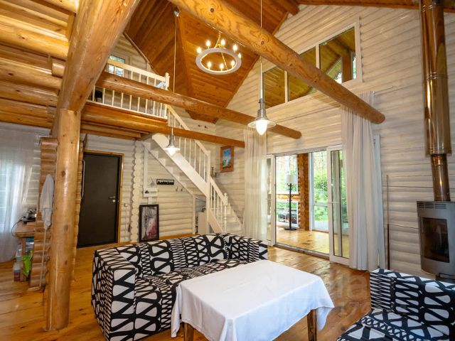 - жилого дома из клееного Бруса, 2005 года постройки, 3 этажа, в том числе подземных 1, общей площадью (315,3 кв. м.), дом утеплен, полностью меблирован и укомплектован бытовой техникой, есть все до мелочей для комфортного проживания, по принципу заходи живи, выполнен хороший ремонт, современный дизайн, все в отличном состоянии, высокие потолки, на 1 этаже дома расположены прихожая, две гардеробные, большой холл, кабинет (18,2 м2), просторная светлая гостиная с выделенной кухонной зоной (50,2 м2), с выходом на застекленную теплую веранду (11,9 м2) и выходом на внутренний двор дома, прачечная и постирочная с местами хранения, ванная комната с душевой, умывальником и санузлом, и лестница из натурального массива дерева, ведущая на 2 и нижний этаж дома, на 2 этаже дома расположена комната отдыха с камином (15,3 м2) и балконом на 1 этаж, коридор и три просторных светлых и уютных спальни (20,8 м2 + 19,1 м2 + 18,5 м2), одна из которых детская комната с лестницей на второй ярус к спальному месту, ванная комната с большой ванной, умывальником и санузлом, все помещения светлые и оборудованные окнами, а также большой открытый балкон с видом на внутренний двор и лес, нижний этаж дома на нем расположены домашний кинотеатр с собственным баром (28,3 м2), спортзал, комната со столом для настольного тенниса, спортзал, хозяйственная комната, бойлерная котельная и электрощитовая,