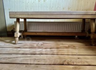 Баня из бруса, площадью 19 кв. метров включает в себя большой предбанник для отдыха и просторную парную, вход с открытой веранды дома. В отделке использованы только натуральные материалы: сосна, липа, лиственница, кедр. Вода заведена. Запаренный березовый или дубовый веник, чистейший снег зимой, а летом ключевая и свежая вода обязательно подарят истинным ценителям бани самые приятные ощущения!