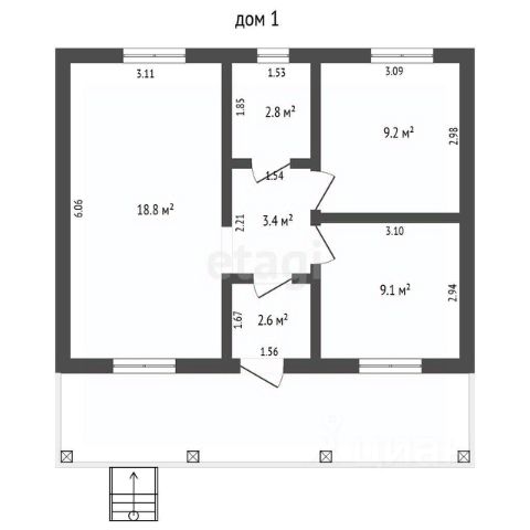 - Баня : из бруса с отделкой вагонкой, фундамент — свайный.