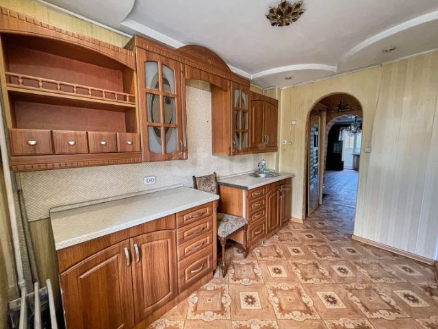 Кухня - просторная, светлая, на полу линолеум, стены надо покрасить.