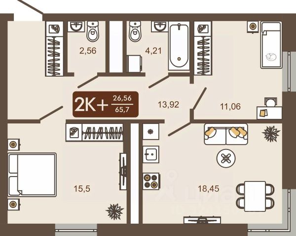 Жилая площадь — 26,7 кв. м,