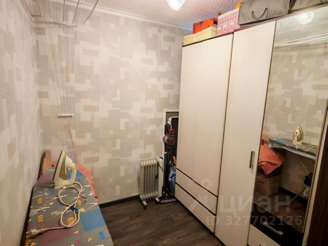 Спальня с отдельным входом. В коридоре есть деревянный классический шкафчик 80-х годов для одежды, с двумя дверками. И вся стена с дверью и шкафчиком из ДСП, можно убрать и расширить вход в спальню, сделать большой шкаф-купе от пола до потолка.