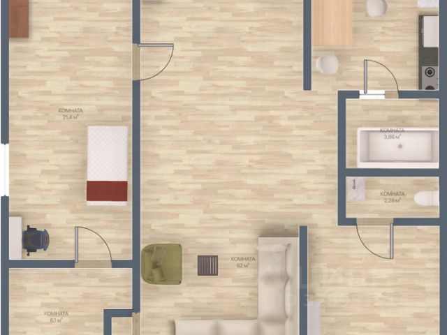 Продается уютная трёхкомнатная квартира с евро-ремонтом на пятом этаже кирпичного дома. Комнаты изолированные, что обеспечивает комфорт и приватность. Из окон открывается вид во двор, где расположена закрытая территория со шлагбаумом, обеспечивающая безопасность и тишину. Кухня площадью 6 м² оборудована всем необходимым, включая холодильник, кухонную плиту, микроволновую печь и вытяжку. В квартире установлены шкафы и гардеробная (*гардеробной на фото нет), что позволяет удобно хранить вещи. Мебель в детской комнате полностью Икея. Ванная комната совмещенная, выполнена в светлых тонах. Стиральная машина и электрическая сушилка для белья обеспечивают комфортный уход за вещами. Тёплые полы находятся в кухне, прихожей и ванной комнате. Также есть электрическое отопление в гостиной. Все двери в квартире выполнены из массива дерева. Диван в гостиной сделан из натуральной кожи (производство Германия). В квартире есть 2 телевизора: в гостиной и в спальне. Балкон застеклён алюминиевыми рамами, что создает дополнительное пространство для отдыха. С балкона открывается красивый вид на гору. Парковка за шлагбаумом и камеры видеонаблюдения во дворе гарантируют сохранность автомобиля. На первом этаже расположен детский сад 6. Также напротив дома есть родник с питьевой водой. В соседнем доме есть продуктовый магазин и стоматология. Автобусная остановка находится в 300 метрах от дома. *Вся мебель и техника на фото остаются новым владельцам. Возможна покупка в ипотеку. Продажа от собственников.