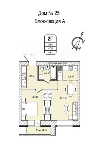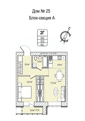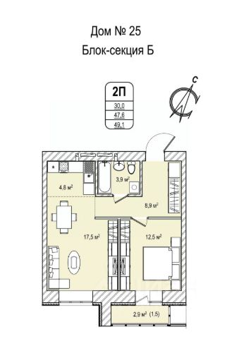 • ✅ Минимальная площадь: 28,9 м²