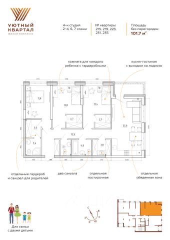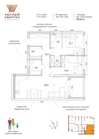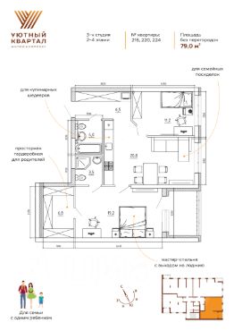 ДО КОНЦА МАРТА ДЕЙСТВУЮТ АКЦИИ: СТАВКА 3,5% НА ВЕСЬ СРОК, РАССРОЧКА НА КВАРТИРЫ, ЦВЕТУЩЕЕ КОМБО - СКИДКА ДО 15% ПРИ ПОКУПКЕ КВАРТИРЫ ВМЕСТЕ С ПАРКОВКОЙ/КЛАДОВОЙ И ДРУГИЕ ПРЕДЛОЖЕНИЯ! Группа компаний "Атмосфера" объявляет о скором старте продаж в новом доме 3 в рамках масштабного проекта комфорт-класса "Уютный квартал". Это уникальный шанс забронировать квартиру по выгодным стартовым ценам. О проекте: ЖК "Уютный квартал" — первый проект комплексной застройки в формирующемся новом центре города, реализованный в концепции "город-сад". Жителей ждут благоустроенные общественные пространства, зоны для прогулок и отдыха, современная инфраструктура для семьи и детей. Особенности новой очереди (Дом 3): Архитектура: 5 секций переменной этажности (от 5 до 15 этажей). Квартиры: от 23,5 до 114,2 м². Отделка на выбор — под самоотделку, предчистовая отделка, "комфорт", "комфорт плюс". Эксклюзивные планировки: пентхаусы на последних этажах с потолками 3,5 м и застекленными террасами. Двор: закрытый внутренний двор без машин с современными детскими площадками. Комфорт: панорамные окна, премиальная отделка мест общего пользования (МОП). Инфраструктура для жителей: подземный паркинг с лифтом, кладовые помещения. Инфраструктура и благоустройство (для всего ЖК): Для отдыха: 2 фонтана, арт-объекты, подвесные гамаки, качели. Для спорта: всесезонный футбольный манеж, площадки для баскетбола и волейбола, воркаут-зоны, площадка для йоги, 3,5 км велодорожек. Для детей: игровые площадки разных возрастных категорий, зимняя горка, каток. Для прогулок: более 10 км пешеходных дорожек. Беседка для проведения праздников. Уже работает в первых очередях: Супермаркет, аптека, пиццерия, кофейня, детский центр. Фитнес-рум, комната для детских праздников. Подкаст-рум с функцией семейного кинотеатра, VR-рум Круглосуточная служба безопасности с более чем 1000 видеокамер. Преимущества локации: Детский сад на 300 мест. Современная школа с блоком школы искусств Спа центр Остановка трамвая в шаговой доступности. Способы покупки: • Ипотека от ведущих банков. • Военная ипотека. • Рассрочка. • Материнский капитал. • Государственные субсидии и сертификаты. Успейте стать частью "Уютного квартала" — пространства, где уют, комфорт и современная инфраструктура соединяются для вашей новой счастливой жизни! Купить квартиру первичка в районе Ленинский в городе Кемерово.