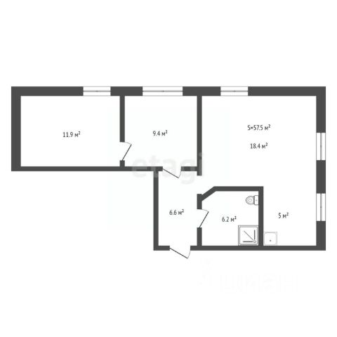 Зал 17,4м2, спальня 13,3м2, кухня 6м2.