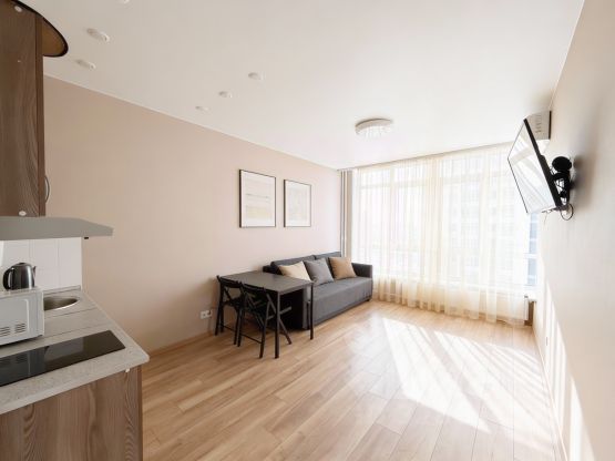 - квартира светлая, солнечная, теплая и очень уютная)), высокие потолки (2,8 м), современная продуманная удачная планировка квартиры, просторная жилая комната квадратной формы с двумя большими окнами, теплой лоджией (зимним садом) и выделенной кухонной зоной, просторной ванной комнатой и прихожей со встроенным шкафом с полками и кронштейнами для одежды, 2 окна + теплая лоджия в тихий двор, в квартире выполнен стильный ремонт с современным дизайном в светлой цветовой гамме, а главное - никто не жил, пол качественный влагостойкий кварцвенил, стены светлые обои и декоративная покраска, матовые натяжные потолки, новая сантехника и санфаянс, унитаз инсталляция, гигиенический душ,