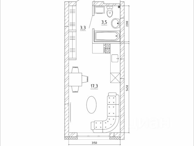— В санузле, на полу керамогранит, уложена плитка на стены, заменена вся сантехника — можно не переживать о протечках в будущем. Вода проведена полиуретаном, канализация выполнена пластиком.