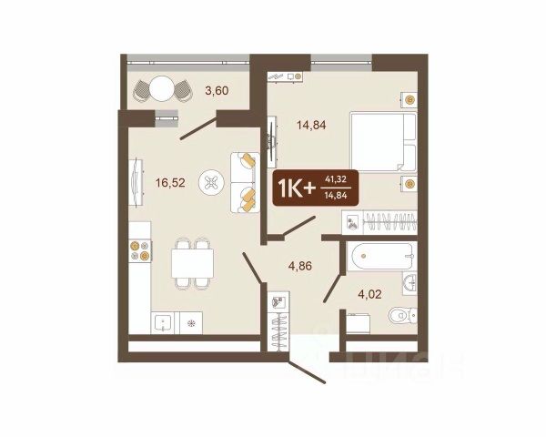 1-к квартира площадью 30,4 кв.м., находится на 1-м этаже 5-этажного кирпичного дома.