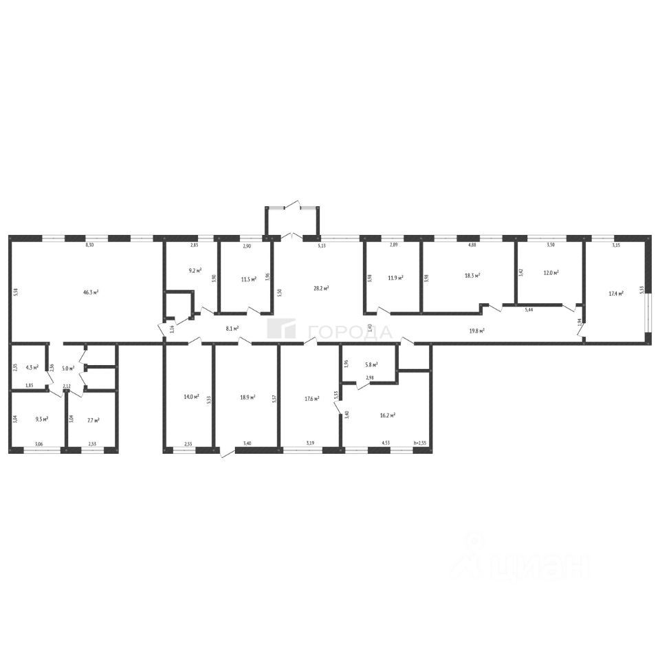 Коммерческое помещение расположено на первом этаже двухэтажного кирпичного здания, общая площадь составляет 290 м 2, что позволяет использовать пространство для различных целей,высота потолков 2,55 м.