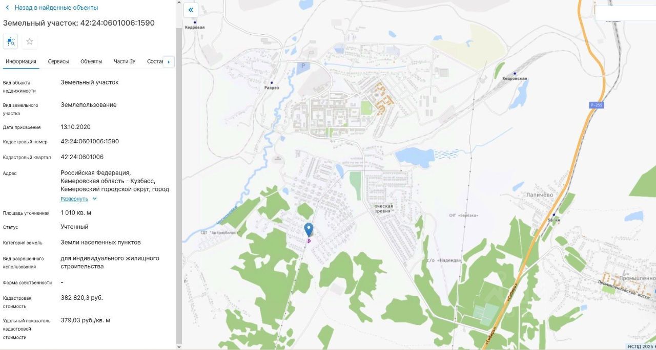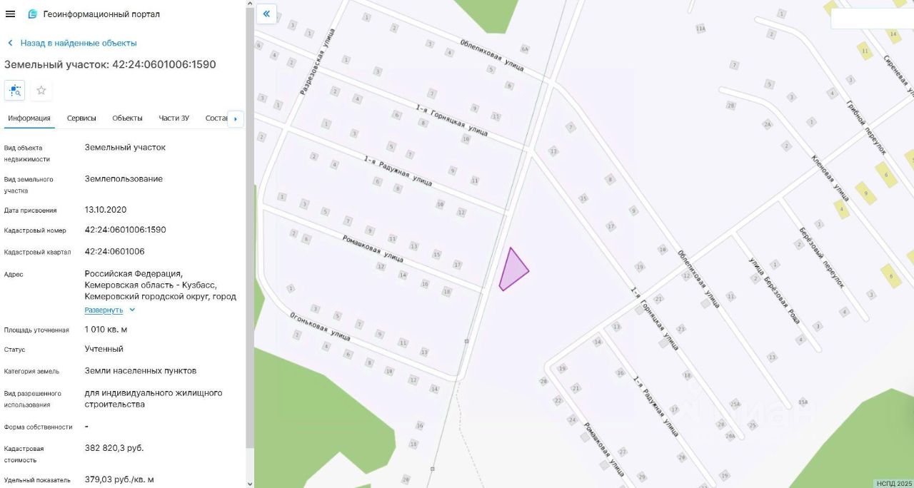 Земельный участок, пл.1010 кв.м, кадастровый 42:24:0601006:1590, разрешенное использование: для индивидуального жилищного строительства, по адресу: г.Кемерово, ул.Ромашковая, поз.8. Срок аренды 20 лет