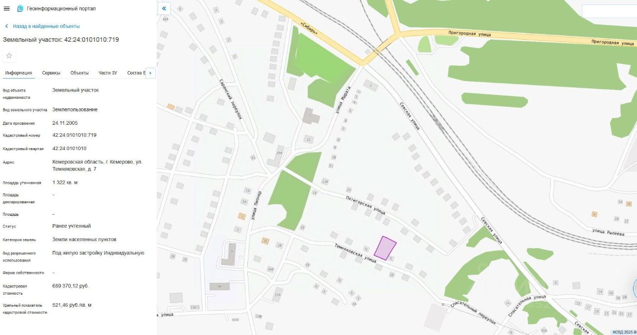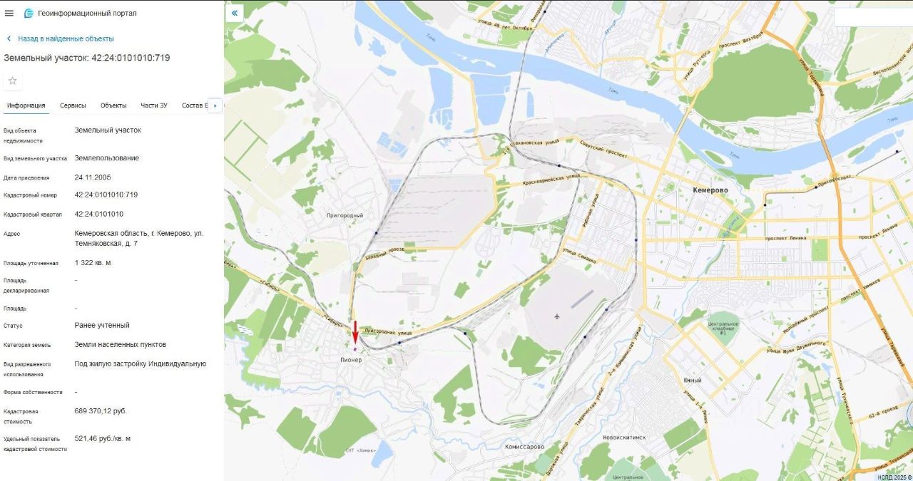 Земельный участок, пл.1322 кв.м, кадастровый 42:24:0101010:719, разрешенное использование: для индивидуального жилищного строительства, по адресу: г.Кемерово, ул.Темняковская, 7. Срок аренды 20 лет