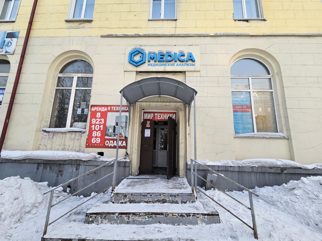 Сдаётся в долгосрочную аренду от собственника коммерческое помещение на Театральной площади (Драмтеатр) в Прокопьевске на проспекте Шахтёров, 33.