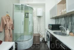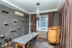 4 отдельных комнаты (ранее массажные кабинеты)прачечнаясанузел (кафель, комбинированный потолок: гипсокартон + натяжной)комната персонала: стиральная машина, бойлер, душевая кабина, кухонный гарнитур, микроволновка
