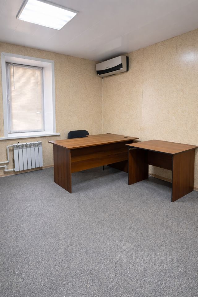 Кабинет с базовой офисной мебелью, установлен кондиционер. Санузел — на этаже.