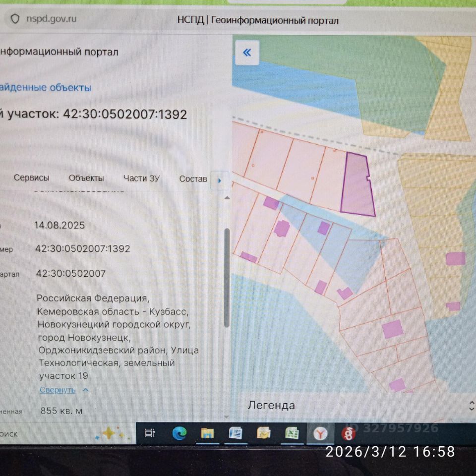 Земельный участок площадью 855 кв. м, вид разрешенного использования: ведение садоводства