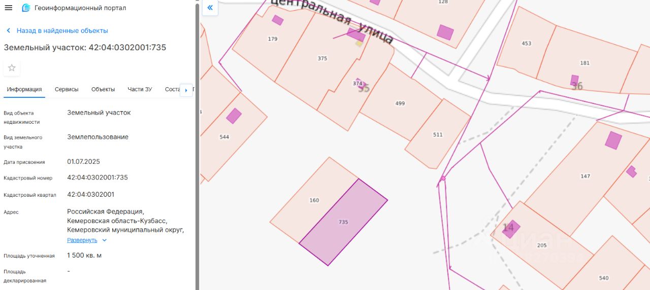Земельный участок, расположенный по адресу: Российская Федерация, Кемеровская область - Кузбасс, Кемеровский муниципальный округ, д. Креково, кадастровый номер 42:04:0302001:735, площадью 1500 кв.м, категория земель земли населенных пунктов, вид разрешенного использования для ведения личного подсобного хозяйства (приусадебный земельный участок)