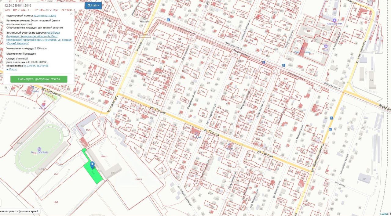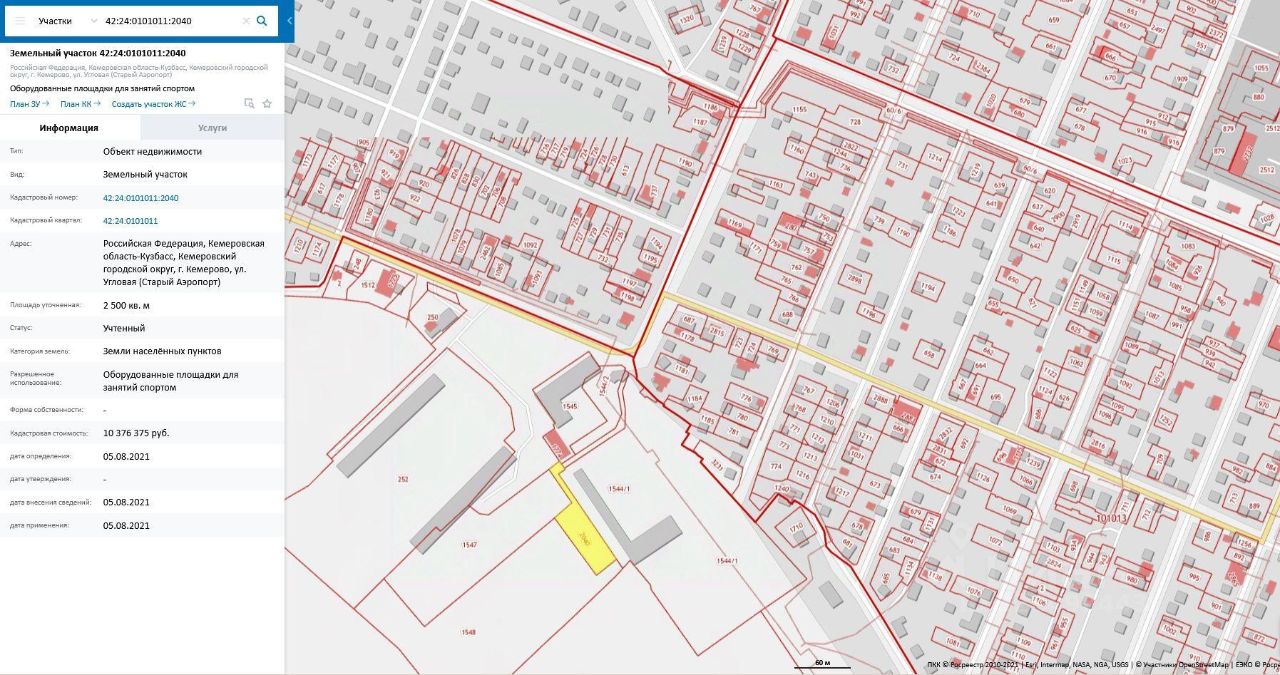 Земельный участок, пл.2500 кв.м, кадастровый 42:24:0101011:2040, разрешенное использование: оборудованные площадки для занятия спортом, по адресу: г.Кемерово, ул.Угловая (Старый аэропорт). Срок аренды 88 месяцев