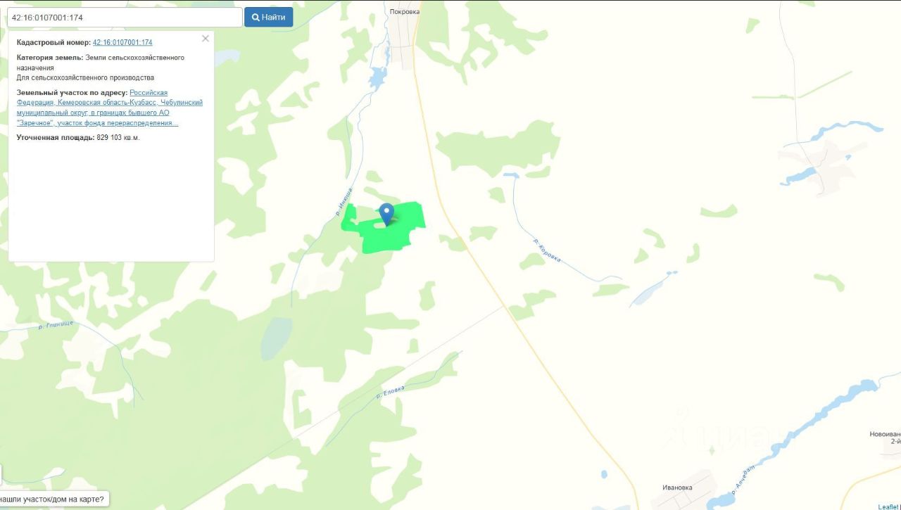 Земельный участок, пл.829103 кв.м, кадастровый 42:16:0107001:174, разрешенное использование: для сельскохозяйственного производства, по адресу: Кемеровская обл, Чебулинский муниципальный округ, в границах бывшего АО Заречное. Срок аренды 5 лет