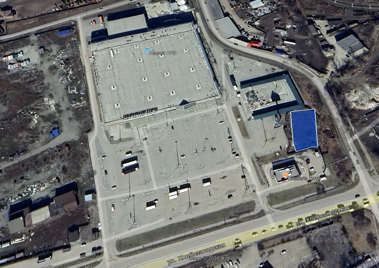 Участок располагается на площадке Ритейл-парка, расположенного на одной из основных транспортных магистралей Центрального района, улице Хлебозаводская.