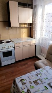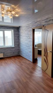 Квартира расположена в доме, где раньше было общежитие, в районе центрального рынка. Из коридора, в котором ванная комната и туалет, вход в кухню. Из кухни в разные стороны расположены 2 большие комнаты по 17 кв.м.