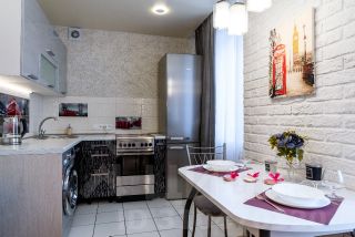 Стиральная машинка, двуспальная кровать 140/200, кресло-кровать, двуспальный диван, кухонная зона, плазменный телевизор 120 см, холодильник, плита, духовой шкаф, микроволновка, чайник, посуда, утюг, гладильная доска, сушилка для белья, фен. Кабельное телевидение, безлимитный Wi-Fi