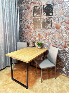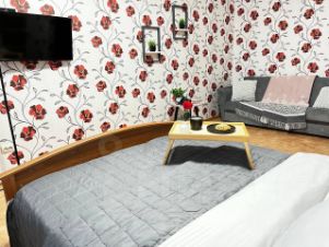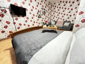 1 комнатная квартира. Есть вся необходимая мебель, посуда, бытовая техника, Wi-Fi. Двуспальная кровать (140 см ширина),и диван. Постельные принадлежности, полотенца.