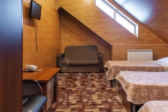 Данный номер является экономичным решением, как для нескольких гостей, так и для большой компании. Номер расположен в мансардной части отеля (5 этаж). Важно! В номере не открывается окно.
