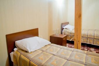 В номере представлено: две полутороспальные кровати и кресло-кровать, прикроватные тумбочки, ТВ, мини-холодильник, стол, чайник, чайный набор, фен, комплект полотенец и одноразовой косметики для каждого Гостя.