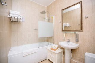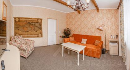 Двухкомнатный номер с двуспальной кроватью, дополнительно есть раскладной диван. Номер оснащен местом для хранения одежды, телевизором, электрическим чайником, ванной комнатой, предоставляются туалетно-косметические принадлежности.