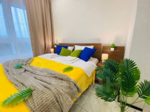В квартире спальня и отдельно кухня. 1 двуспальная кровать + 1 раскладной диван. Для вас готово свежее постельное бельё (100%-й хлопок) и полотенца. В квартире есть большая ванна и балкон.